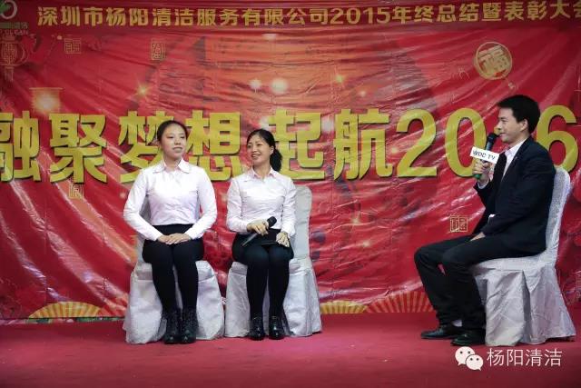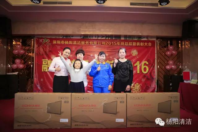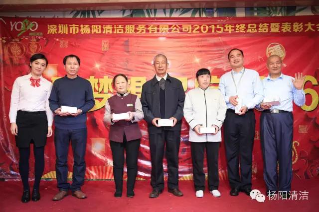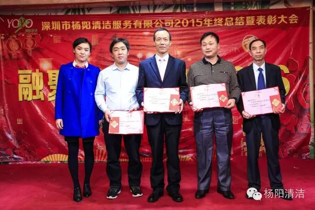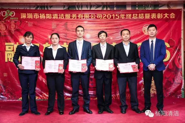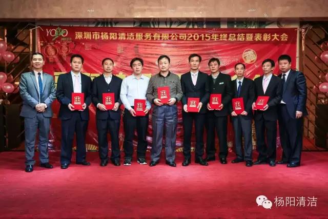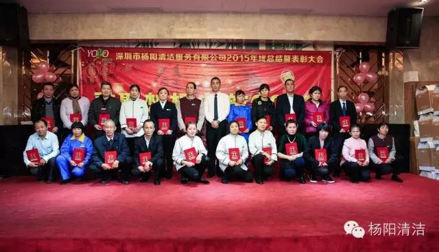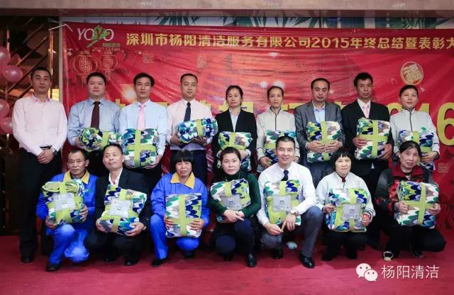 深圳市杨阳清洁服务有限公司2015年总结暨表彰大会于2016年1月18日在鹏湾大酒店举行,杨阳人欢聚一堂,分享新年的喜悦,对2015年工作进行总结,对2015年取得的成果一起分享,通过大会的形式对优秀员工和主管给予表彰与奖励。