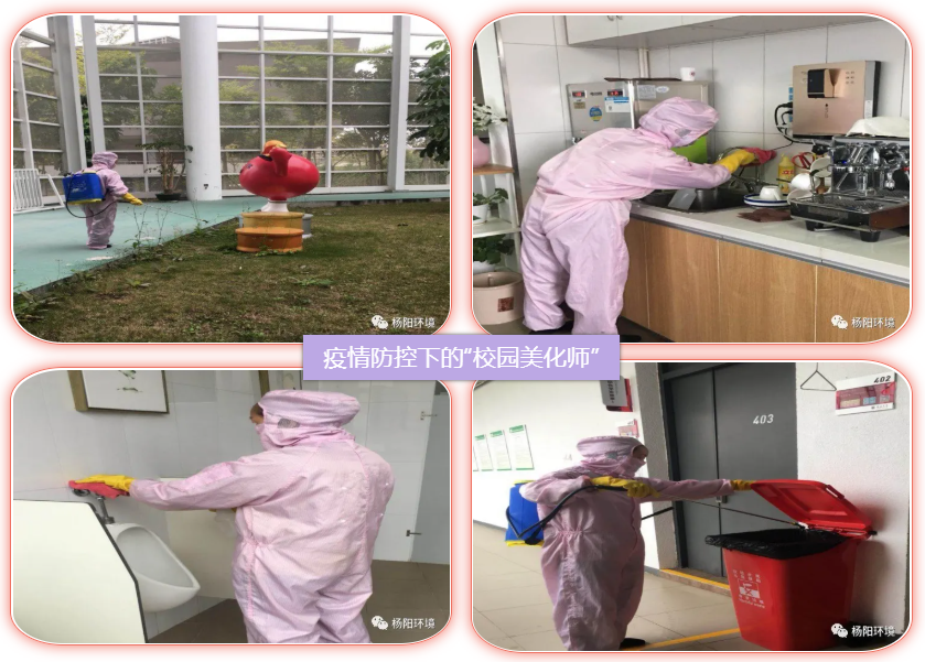 杜大雄说,校园消毒消杀区域面积巨大,他们面临着人手紧张、工人老龄化、护具不足等严峻考验,“这个时候必须全员顶上,没有岗位职级之分,全部人员下沉一线,管理人员必须冲锋在前,全力确保环境消杀工作顺利进行。”